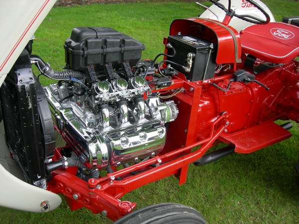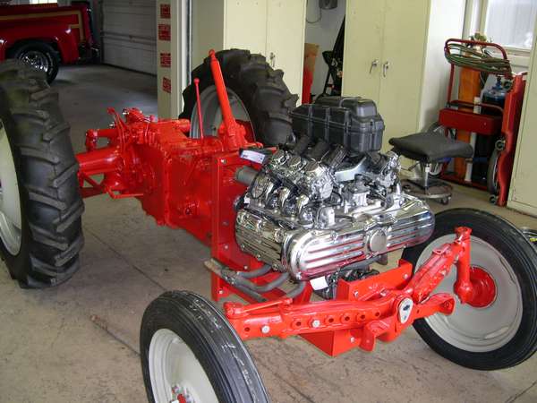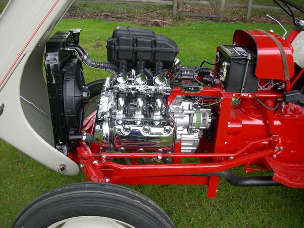 My intention as in the past was to take approximately one year to complete this project. Once I started this project it was like reading a good book and I could not put it down. There were some twelve hour days along with some busted knuckles and the project was completed in three months. Everything on this project was built in my shop except for a driveshaft and the bending of the exhaust pipe. As far as the conversions I have completed this was the easiest because of the hydraulic self contained clutch on the motorcycle engine. It will be interesting as I take this tractor to shows and observe people attempting to identify this unrecognizable engine. It is seldom that anyone would ever see a Valkyrie F-6 motorcycle engine outside its frame.