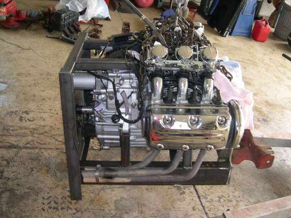 I came back home with measurements and after some thought headed back to Navarre Ohio for some real serious discussion. Their master mechanic was Chuck Santana who was very helpful and patient with me. We discussed what I would need and eliminate everything that was used on the motorcycle that would not be needed for the tractor. During our discussion Chuck mentioned that if I did not need reverse on the engine I should consider the Honda Valkyrie engine instead of the Goldwing. I don't need reverse as I will have that in the tractor transmission. The Valkyrie motorcycle is a 1500 cc high performance six opposing cylinder engine using six carburetors with 98.5 horsepower.
