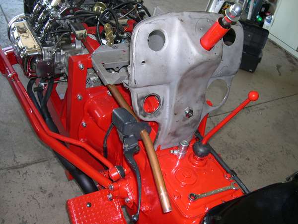 Now it was time to start the engine for the first time. It started with a roar which is uncommon for a Honda Valkyrie as they are normally a very quiet running machine. I used the original clutch master cylinder and handle from the motorcycle. I mounted it on the lower left side of the tractor dash board and can operate the handle by hand or by using my left knee. When all the connections were made for the hydraulic clutch it would not disengage. After another technical discussion with mechanic Chuck regarding bleeding the hydraulic clutch system it was finally determined that the clutch was stuck from being in storage. After numerous attempts the clutch was finally free and I was able to drive the tractor for the first time. What a thrill. Next is the sheet metal and as on my other conversions I also converted this one to a tilt hood design instead of a fixed hood configuration.